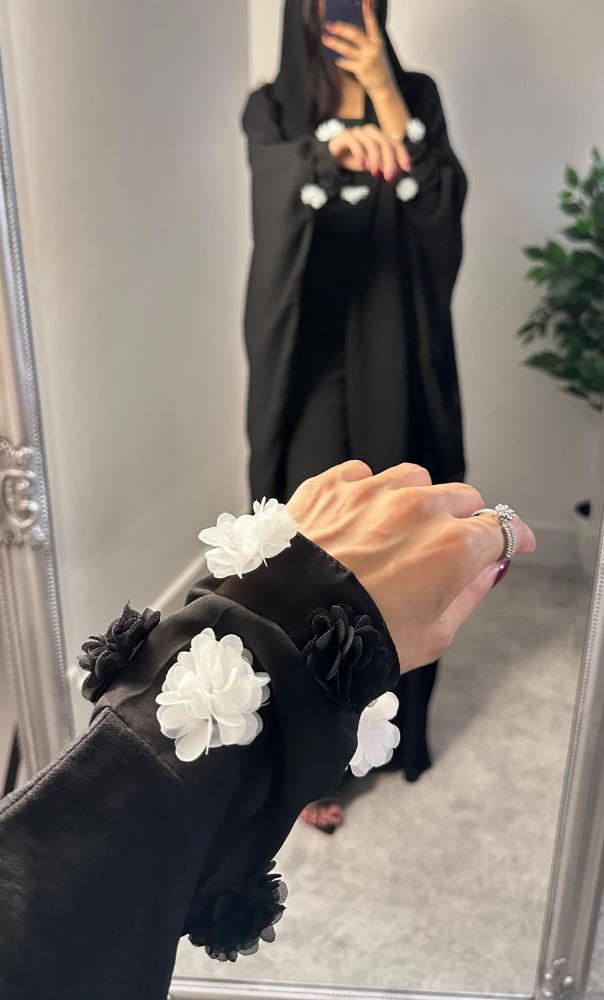 عباية بشت لف بلمسات زينة شكل ورد: تألقي بإطلالة فريدة مع أجمل عبايات كاجوال سوداء