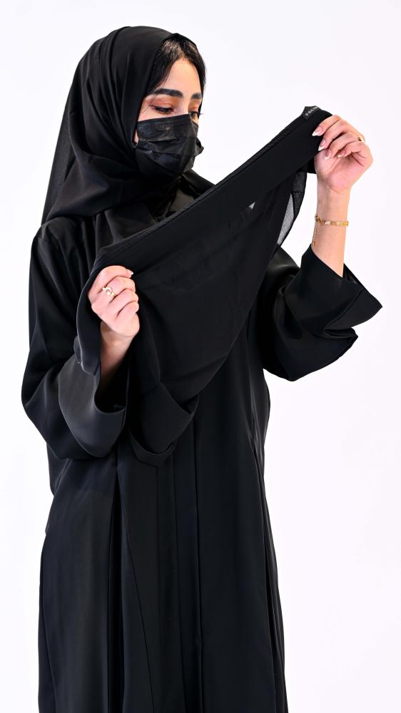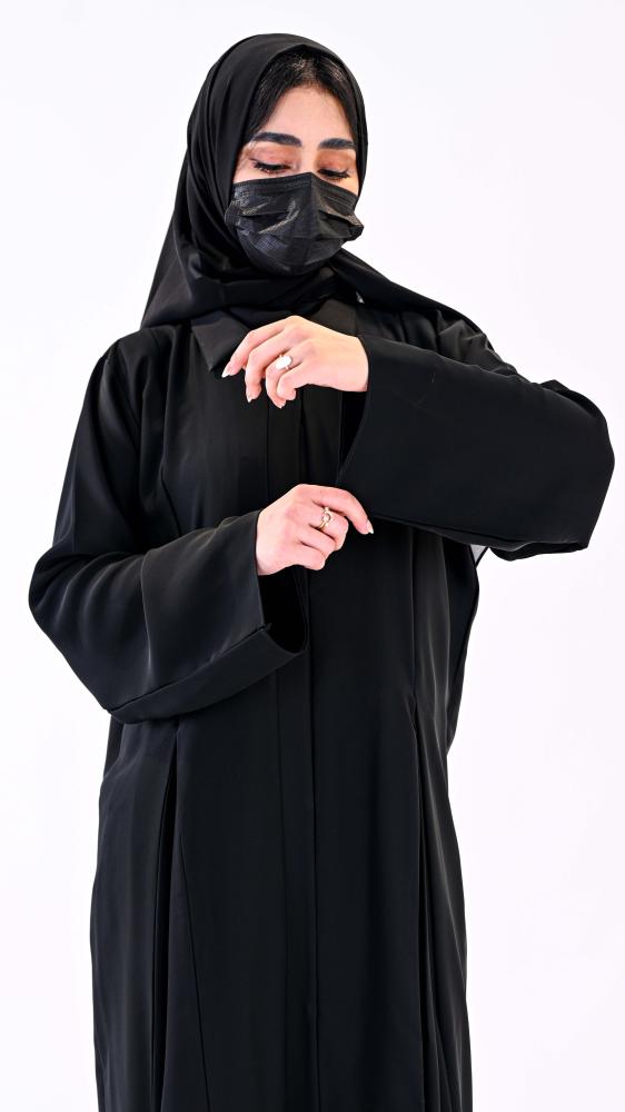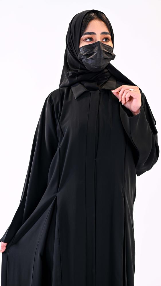 عباية سوداء بكسرات أمامية وخلفية أنيقة تناسب احتياجاتك اليومية
