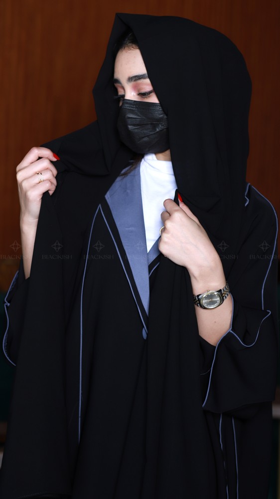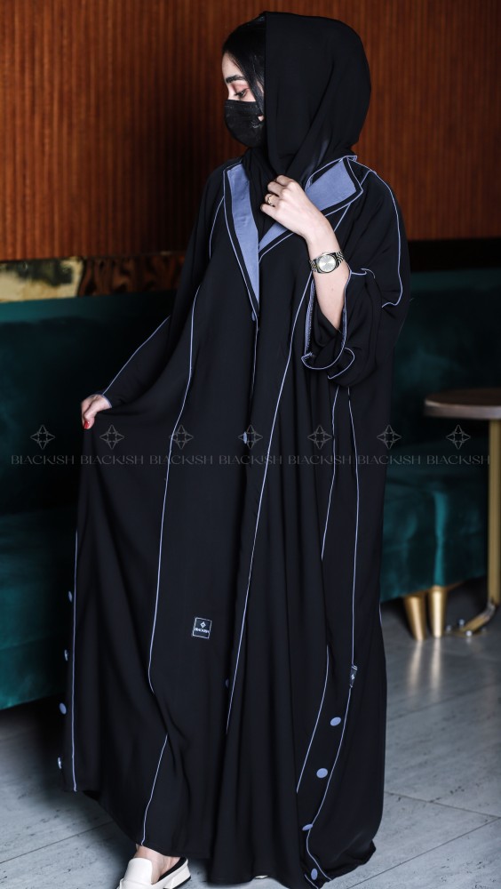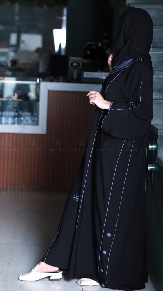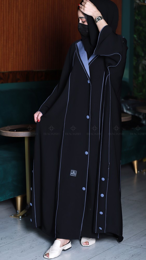 عباية كتف كلوش بياقة مع أزرار زينة: أناقة التفاصيل وفخامة الأسود