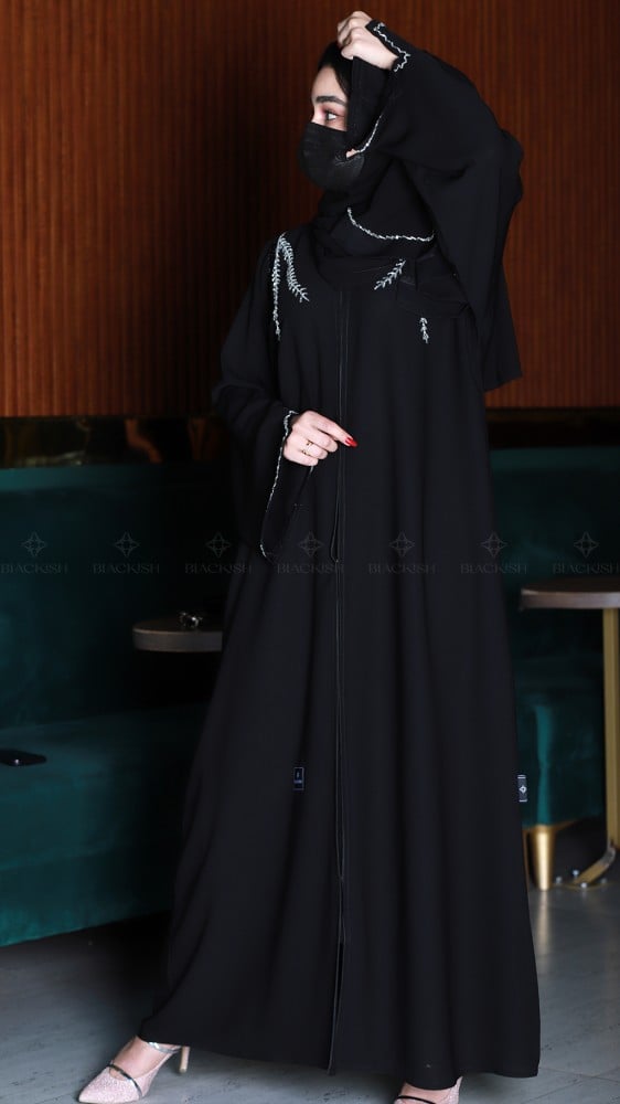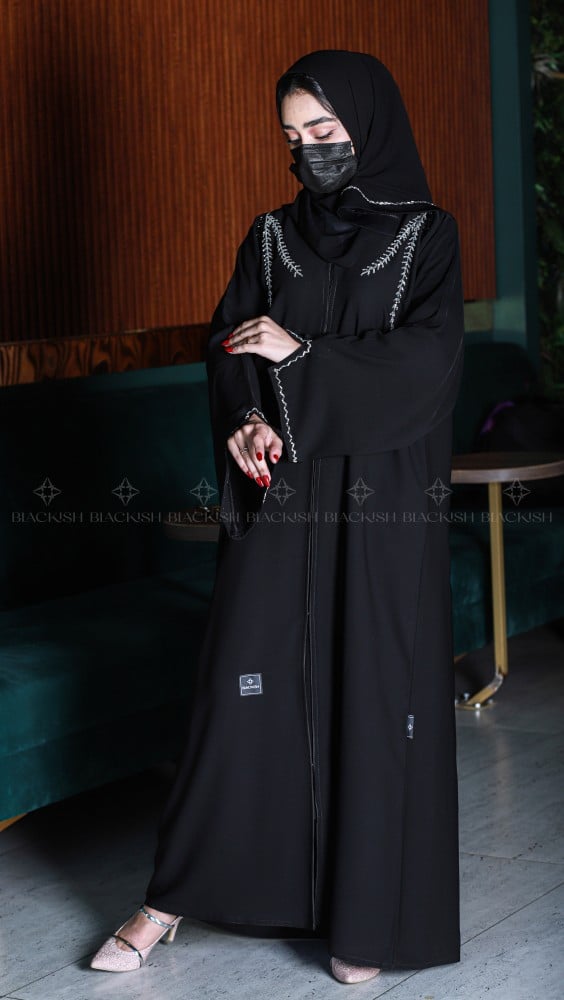 - العباية مصنوعة من أجود أنواع قماش قماش كريب ملكي الفاخر الذي يضمن نعومة وفخامة في كل لمسة.